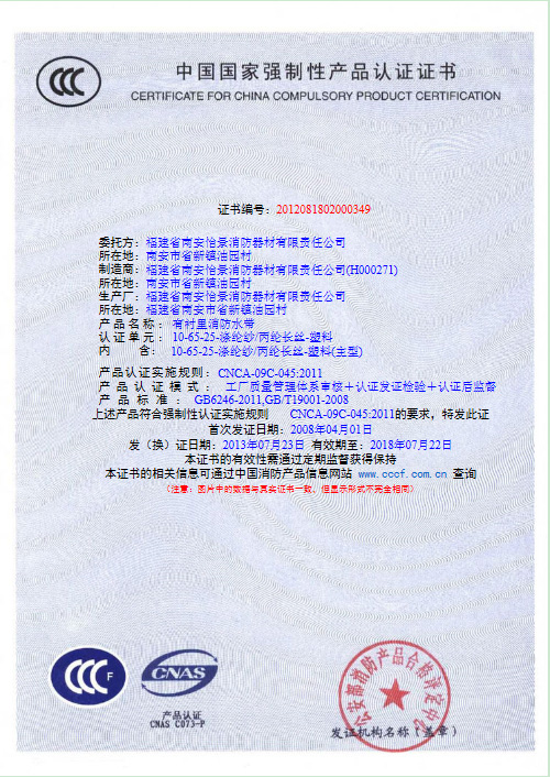 消防水带CCCF认证