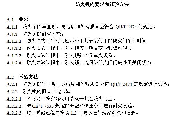 1、防火锁的牢固度、灵活度和外观质量应按3C认证中的规定标准进行试验。